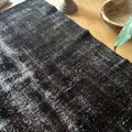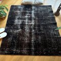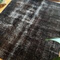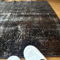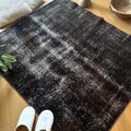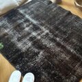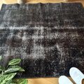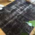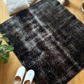 109.5×124 正方形 こげ茶ブラック 擦れシャビー トルコヴィンテージラグ