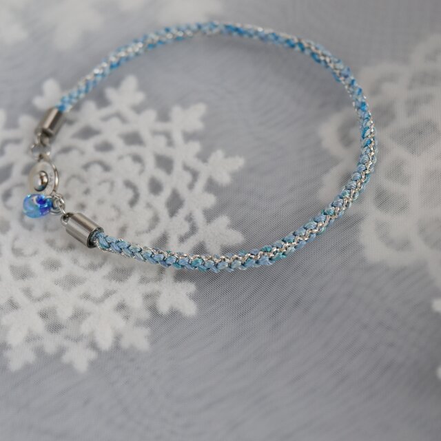 凍てついた氷の世界をイメージした、少し細目の組紐ブレスレットです。