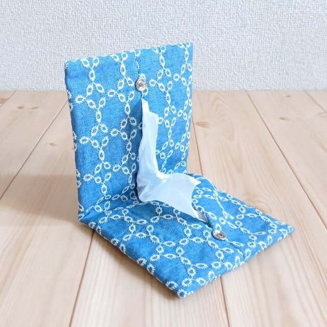 カジュアルなダンガリーの携帯用のティッシュケースです。