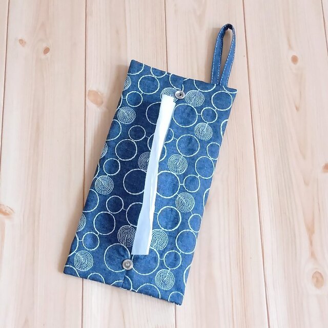 カジュアルなダンガリーの携帯用のティッシュケースです。