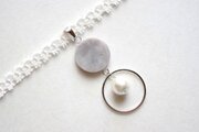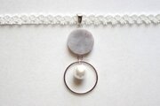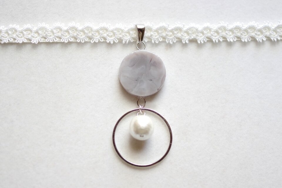 グレーのマーブル模様が美しいレジンを、サテンリボンにタティングレースで装飾を施したチョーカーに仕上げました。