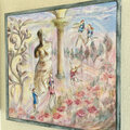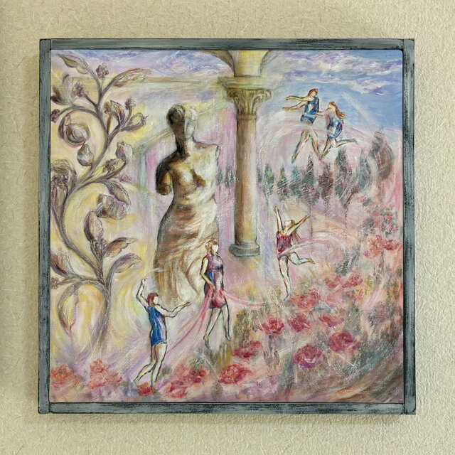 オリジナル画 40cm×40cmのパネルにアクリル/コンテ / 彩色木枠