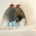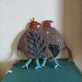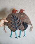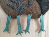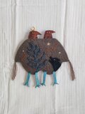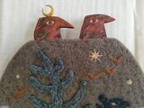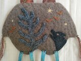 芯材の厚手紙・ポリ綿をウール生地で縫い込んだ軽い壁飾り。