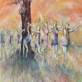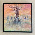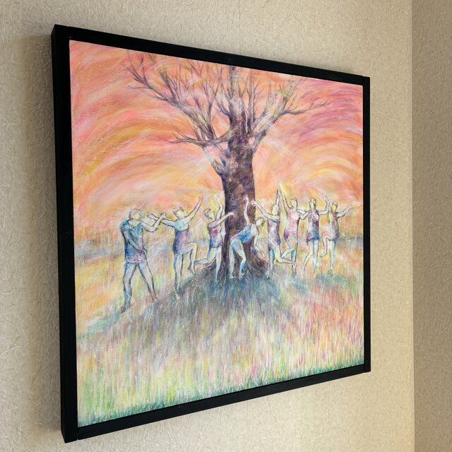 オリジナル画 40cm×40cmのパネルにアクリル/コンテ / 彩色木枠