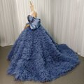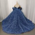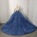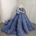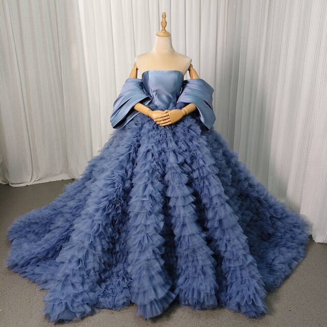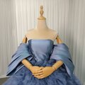 豪華!カラードレス ブルー ベアトップ ドロップショルダー 柔らかく重ねたチュールスカート 編み上げ 前撮り