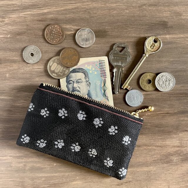 和風でカワイイ、ワンニャンな足跡柄の畳のヘリで作ったミニポーチです。