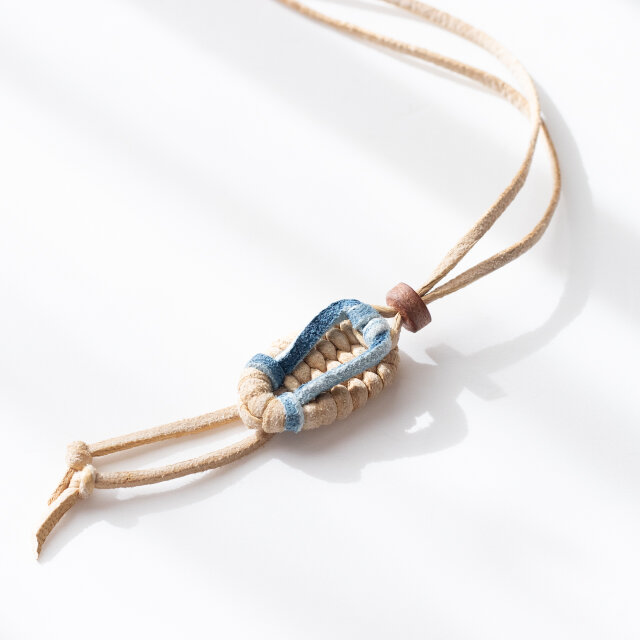 この地に新しく根付いた力強い文化の連鎖を、小さな草履の首飾りに編み込みました。