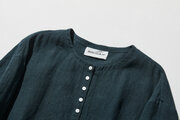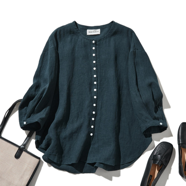 ★サンプルセール 1点のみ★毎日のコーデに取り入れやすいリネン100% ノーカラー カーディガン 紺 230506-6