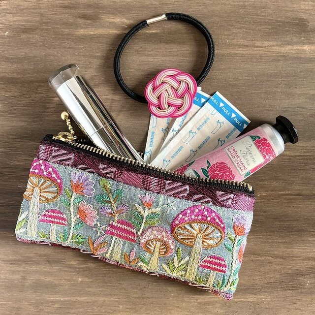 畳縁/和柄/日本/伝統/着物/母の日/父の日/敬老の日/入学/畳のヘリ/畳のへり/畳へり/刺繍/刺繍リボン/インド/インド刺繍/サリテープ/インド刺繍テープ/手縫い/個性的/大人可愛い/キュート/キノコ/きのこ/ベニテングダケ/童話/ファンタジー