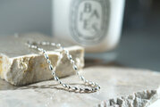 ボリュームのあるシルバーのチェーンがクールな印象でとても素敵です! チェーンに直接フックを留めるデザインなので、スッキリと肌になじむのも良いです。 希望のサイズにもぴったりと合わせていただきました。 シンプルで何にでも合わせやすいので、毎日着けたいと思います。 ありがとうございました。