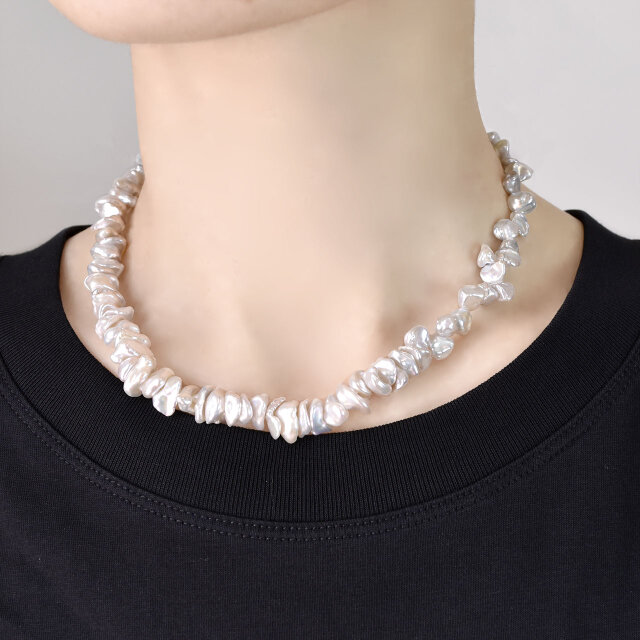2種類の異なるケシパールを贅沢に組み合わせたネックレスです。