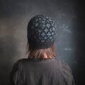 ふわふわと舞い散る柔らかい雪をイメージした、雪の結晶柄ニット帽です。