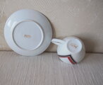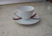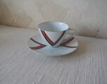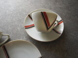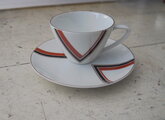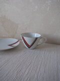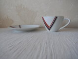 赤と黒のV字デザイン紋様がすっきりとしたカップ&ソーサーです。