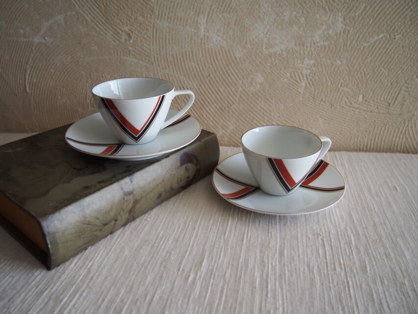 昭和レトロモダン V字紋様カップ&ソーサー二客組
