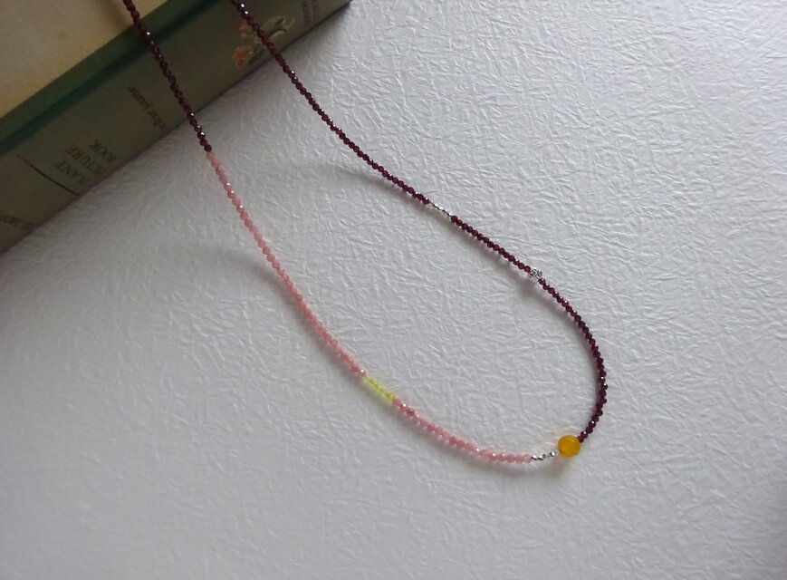 素材:ガーネット、ロードクロサイト(インカローズ)、イエローカラーカルセドニー、