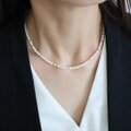 ネックレスは小粒の淡水パールとビーズをランダムにミックスさせたデザイン。