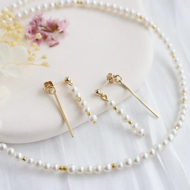 ベビーパール ネックレス+ピアス/イヤリング 2点set