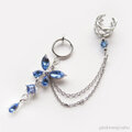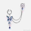 ブルーのガラスでキラキラした蝶々とフープ型イヤリングとのブルーのガラスビーズのついたイヤーカフを太さと細さの違う2本のチェーンで繋げました