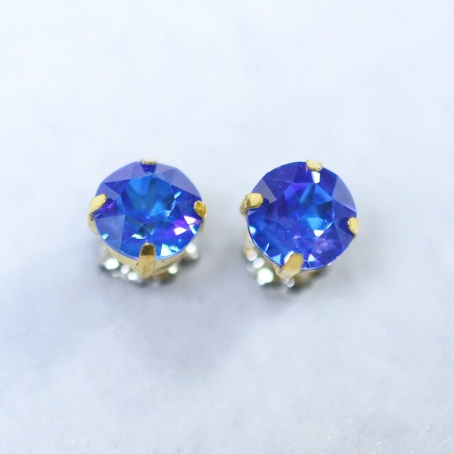 スワロフスキー・チャトンのピアス(6mm・ クリスタル ロイヤルブルー ディライト・チタンポスト)