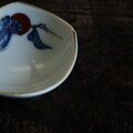 赤い柿と青いリーフ◆有田焼 柿文色絵金彩楕円小皿 醤油皿 古民家 古道具 antiques 昭和初期