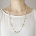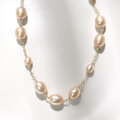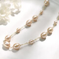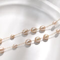 黄みが強すぎない、ニュアンスカラーの シャンパンゴールドの淡水パール(ライスパール) を贅沢に連ねた、60cmネックレスです。