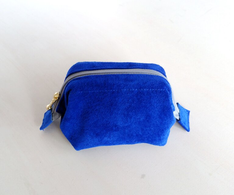 ☆一点もの☆ ピッグスエードのワイヤーポーチ ロイヤルブルー