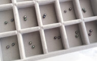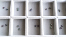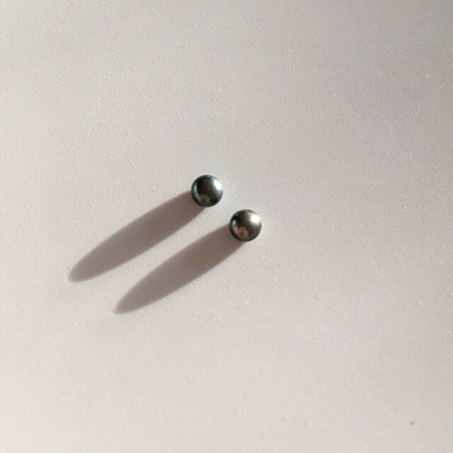 ぷっくりとふくらんだ小粒タイプのブラックパールが愛らしいです。