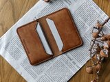 ・厚みを抑えた薄めの革を使用しているため、分厚くなるのが苦手な方におすすめです。オイルレザーですが、薄くて軽量です。