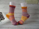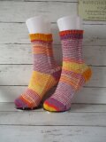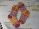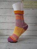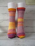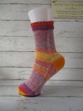 ドイツのブランド Opal ABO & Uni 3081で編んだマチありジョグレスストライプの靴下で履き口はゴム編みになってます。