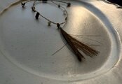 古いビーズや石を編み込んだ