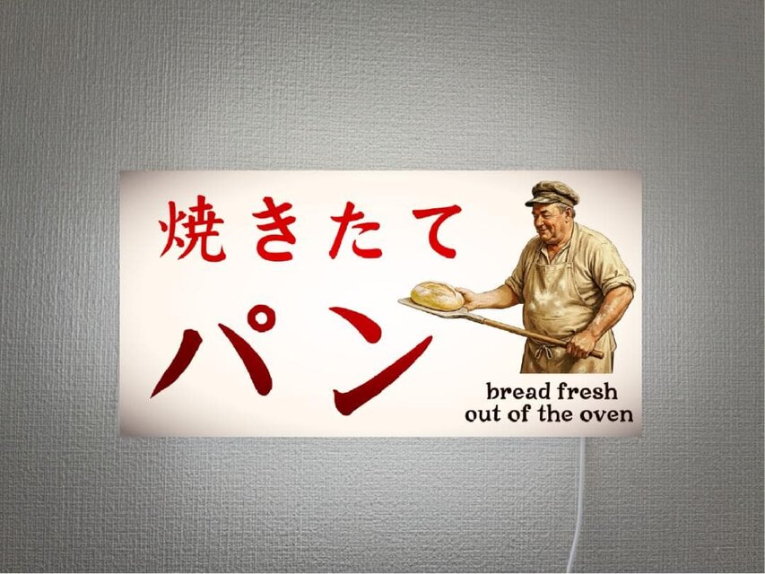 【オーダー無料 Lサイズ】焼きたて パン ベーカリー ブレッド 店舗 レトロ 壁掛け 照明 看板 置物 雑貨 ライトBOX