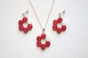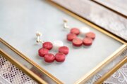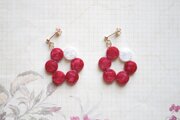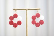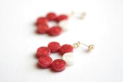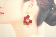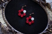 椿の花を思わせる赤の中一色だけ違う差し色の白が清廉な印象を与えるピアス。