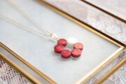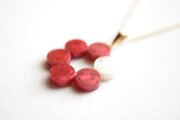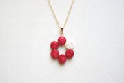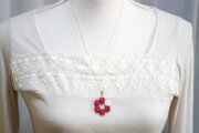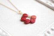 椿の花を思わせる赤の中一色だけ違う差し色の白が清廉な印象を与えるペンダント。