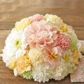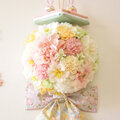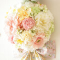 雛祭りを思わせるやさしいパステルカラーで仕上げた春色のフラワーボールです。