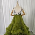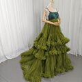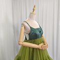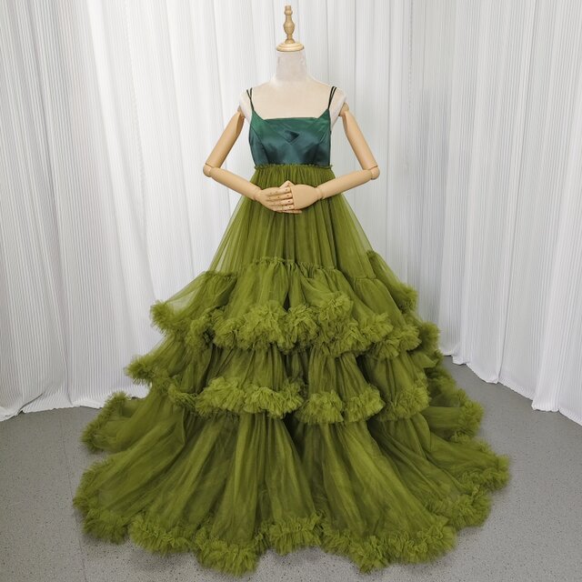 カラードレス グリーン キャミソール ボリュームドレス 優雅なシルエット デザイン感 背中見せ 前撮り