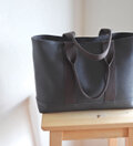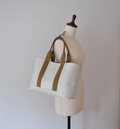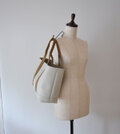 作品が到着いたしました。 優しいラテグレージュ色と細いレザーハンドルが、とても上品でフェミニンな印象の素敵なバッグですね。 季節を問わず活躍してくれる事間違いありません。ありがとうございました。