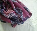 薄く柔らかいコットンローンの 肌ざわり は 優しく襟元を 温めてくれそう! 軽くて 小さくなるので バックに 入れて 置いて 何時でも使えるよう出来そう。 プチプレゼント とっても可愛い。