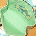 中はグリーンの細かいチェックで、ポケットのみ外の花柄です。