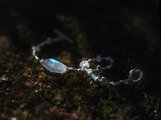 通称レインボームーンストーンとも呼ばれ、光の入り方や見る角度によってオーロラのような幻想的なシラーを浮かべます。