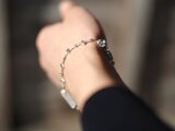 小判形のシルバービーズをアクセントに繊細なシルバーラインで繋ぎ、上質な天然石の贅沢なシルバーブレスレットに仕立てました。