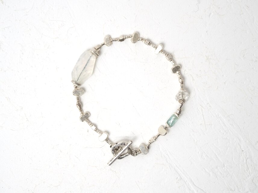 -Andesine labradorate・Herkimer quartz・Emerald- silver bracelet