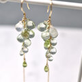 14kgf グリーンアメジスト ペリドット レインボームーンストーン 天然石 揺れる 緑 グリーン 透明感 クリア 涼しげ キラキラ シャラシャラ 房ピアス プレゼント ギフト ご褒美