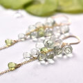 【14kgf】グリーンアメジストを贅沢に束ねたピアス|レインボームーンストーン・ペリドット添え