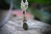 希少★古代の幻★14ctモルダバイト マクラメネックレス2041