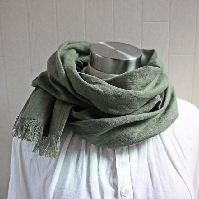 秋冬 やわらかリネンのストール モスグリーン