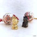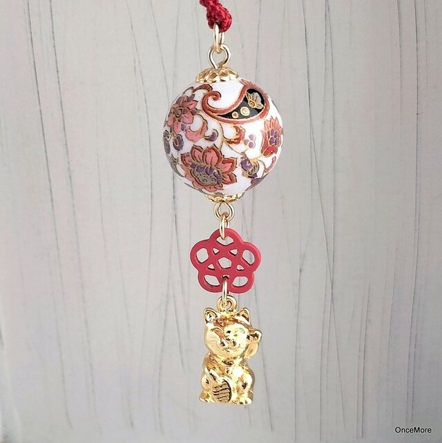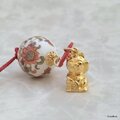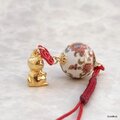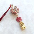 和柄玉と招き猫の根付け・帯飾り(GLD)