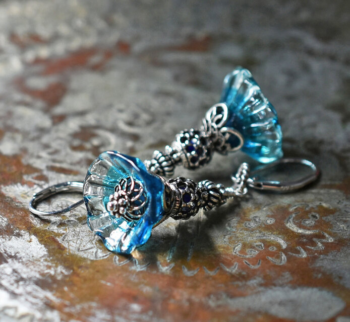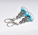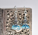 透かし模様のシルバービーズの中には、ブルーのヴェネチアアンティークビーズを忍ばせました。