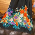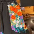 多彩な花々がいっぱいに咲き誇り、まるで万華鏡を覗いたような美しさ。黒地の凛とした強さと、カラフルな柄の柔らかさが絶妙なハーモニーを奏でます。