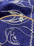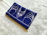 色はネイビーブルーよりも青い、ロイヤルブルーの生地に、白糸刺繍です。