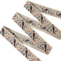 インド刺繍リボン50cm切り売り 草むらの小鳥 アイボリー 5cm幅 花 HC 野鳥 ヒタキ バード 雀 R-0832